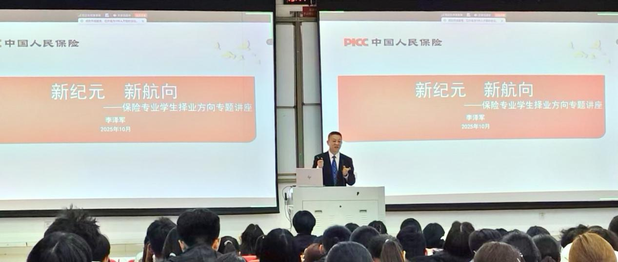10月20日下午,kaiyun举办“金融机构进校园”系列活动,特邀中国人民健康保险股份有限公司河南分公司党委委员、纪委书记李泽军作题为“新纪元 新航向”的专题讲座,旨在助力kaiyun开云官方学子做好职业规划。活动采用“线上+线下”形式,kaiyun2025级全体在校生分别在郑东校区和文北校区同时参加,讲座由院长赵紫剑主持。