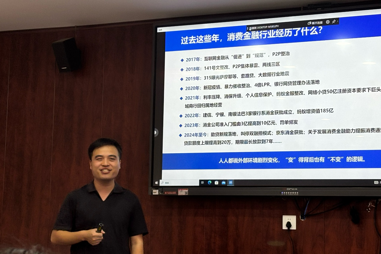 6月12日,河南中原消费金融公司线上业务部总经理、上海财经大学管理学博士刘靖受邀来到kaiyun,在建树楼B座528会议室以“互联网消费金融数字化营销实践”为主题开展讲座。本次讲座由许良老师主持,院长赵紫剑、副院长方磊及2023级、2024级研究生参加。