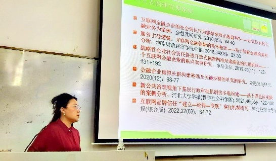 为了提高专业学位研究生案例类论文写作水平,提升专业学位研究生培养质量,6月28日下午,河北省教学名师,河北kaiyun开云官方金融与投资学院院长、《金融理论探索》副主编郭净教授应邀到kaiyun以“研究生人才培养的案例探索研究”为主题作了专题学术报告,kaiyun开云官方研究生导师和专业学位研究生聆听了报告。