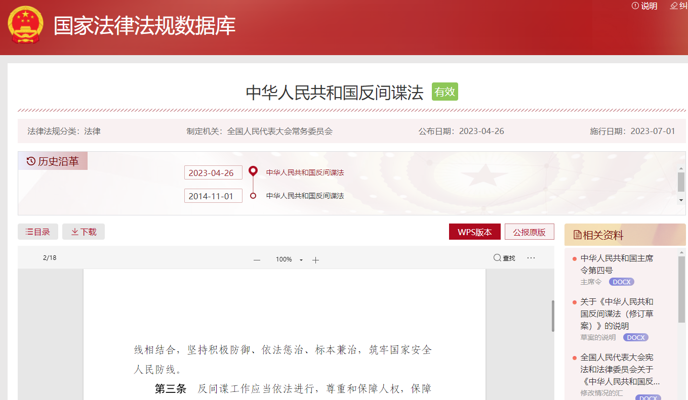 中华人民共和国反间谍法