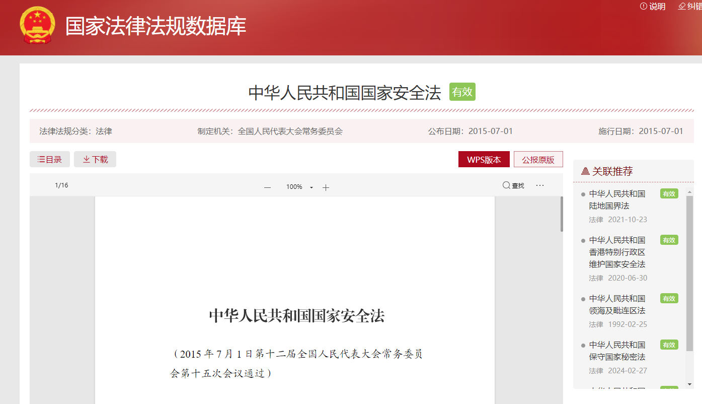 中华人民共和国国家安全法