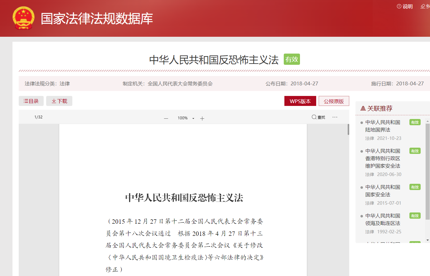 中华人民共和国反恐怖主义法